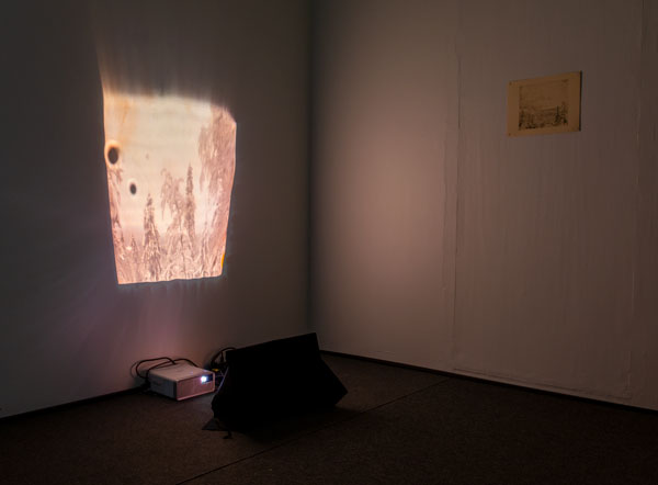 Videoteos on paikkasidonnainen täydennys aiempaan Clauden huone (2021) -installaatioon, joka koostuu kuparisista painolaatoista valmistamistamme peilipinnoista ja niiden kautta kuvatuista aikasarjoista. Lähtökohtana on Clauden lasi, 1700- ja 1800-luvun maisemamaalarien ja matkailijoiden käyttämä kupera musta peili.